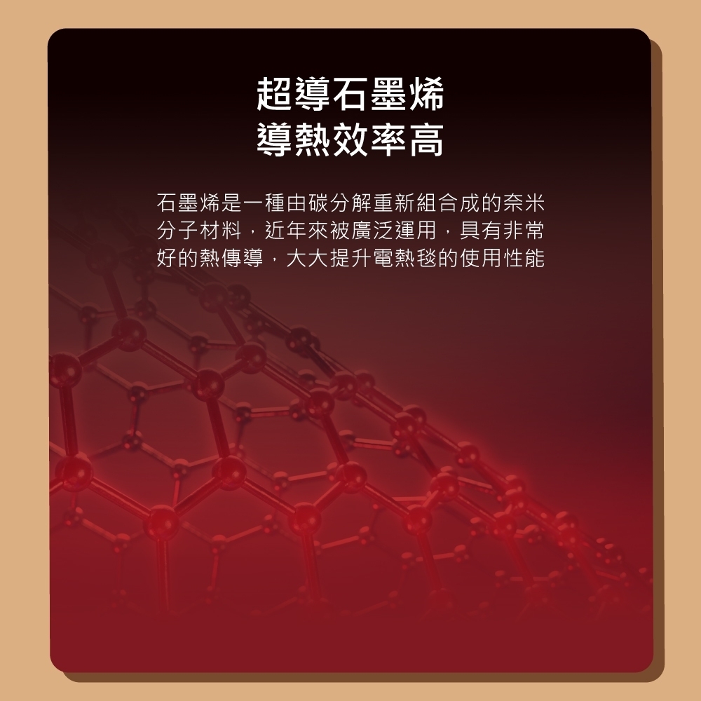 這是電熱毯界的高階頂規商品,添加現在最夯的石墨烯材質,除了讓升溫快速 20 % 之外,更有遠紅外線的功能,除了讓你睡暖暖,更人你睡出健康,不管是戶外露營還是居家生活,迎接即將到來的寒冷冬天,你應該要有這個「石墨烯溫控雙人電熱毯」,台灣商檢局檢驗通過,微電腦控制器,有八小時的定時,五段的溫度設定,過熱自動斷電,家裡面有怕冷的朋友或是老人小孩,可以趁現在下單搶購