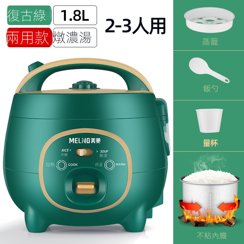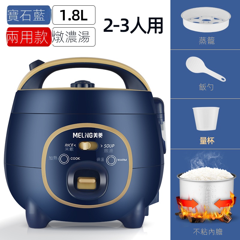 半小時前【美菱電器特價狂歡 限時85折 活動持續時間0729-0830號】美菱多功能迷你電飯煲,煮飯煲湯二合一,1-3人的量剛剛好,下單贈送蒸籠、米飯勺、量杯。 - 1件 NT$1290