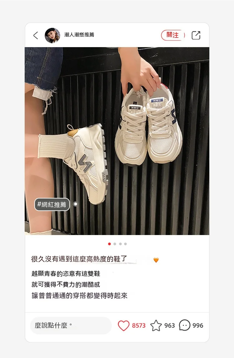 7分鐘前#日本專家贊不絕口的軟底N字運動鞋 旨在矯正您的行走姿勢,減輕雙腳負擔,提供前所未有的舒適感! 柔軟材質,抗菌除臭,即使長時間穿腳也不會累。 5厘米厚的鞋底,顯得腿長! - 【限時特惠】二入組 僅售-NT$ 2199