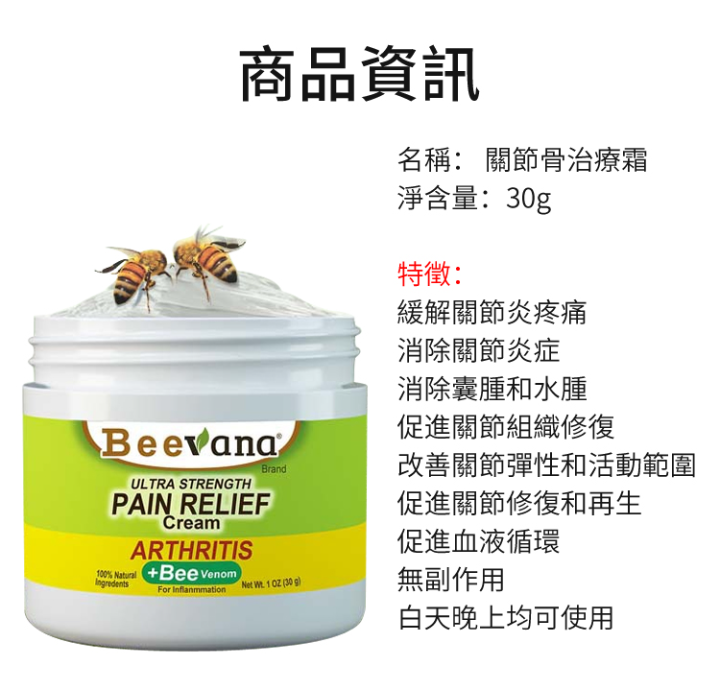7分鐘前蜂毒關節霜#關節疼痛,#腫脹,全面護理 塗一塗告別疼痛 ☑損傷疼痛☑腫脹變形☑風濕骨痛 - 【第一療程】二入組NT$750