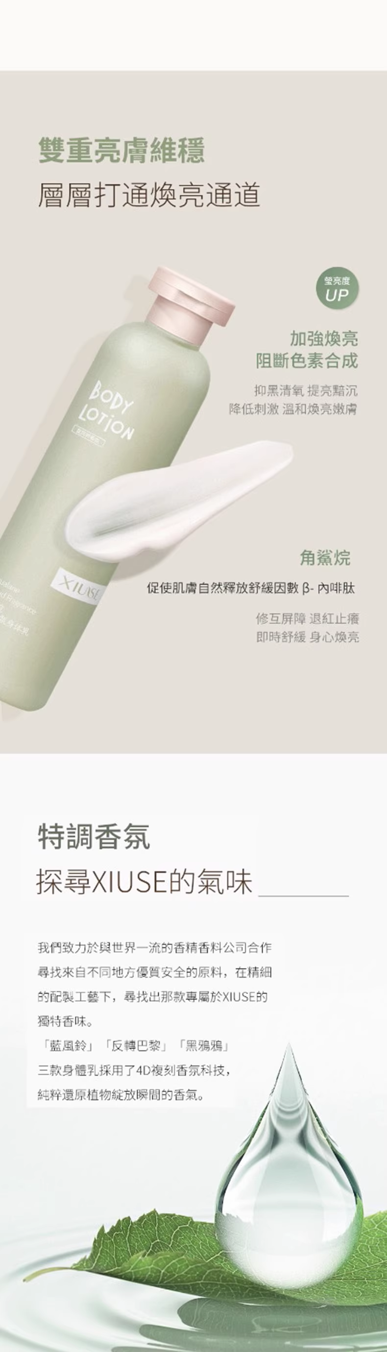 20分鐘前【男朋友抱著我說好香呀】植物香氛身體乳,出汗都是香香的~比香水更迷人,持久留香提亮膚色,保濕滋潤清爽不油膩,高級香味好聞不刺鼻,一天擦一次 走到哪都是香香的~ 免 - 【活動優惠】 三入組 -NT$958(均價低於319)