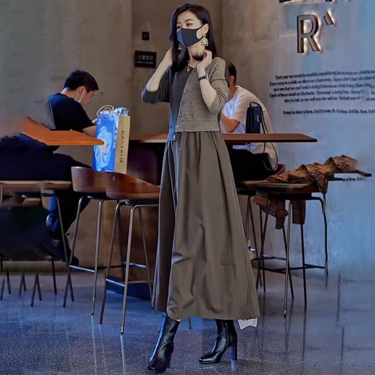 4分鐘前【限時活動 貨到付款】針織假兩件連衣裙,上身減齡顯氣質! - 一入組優惠價!NT1390