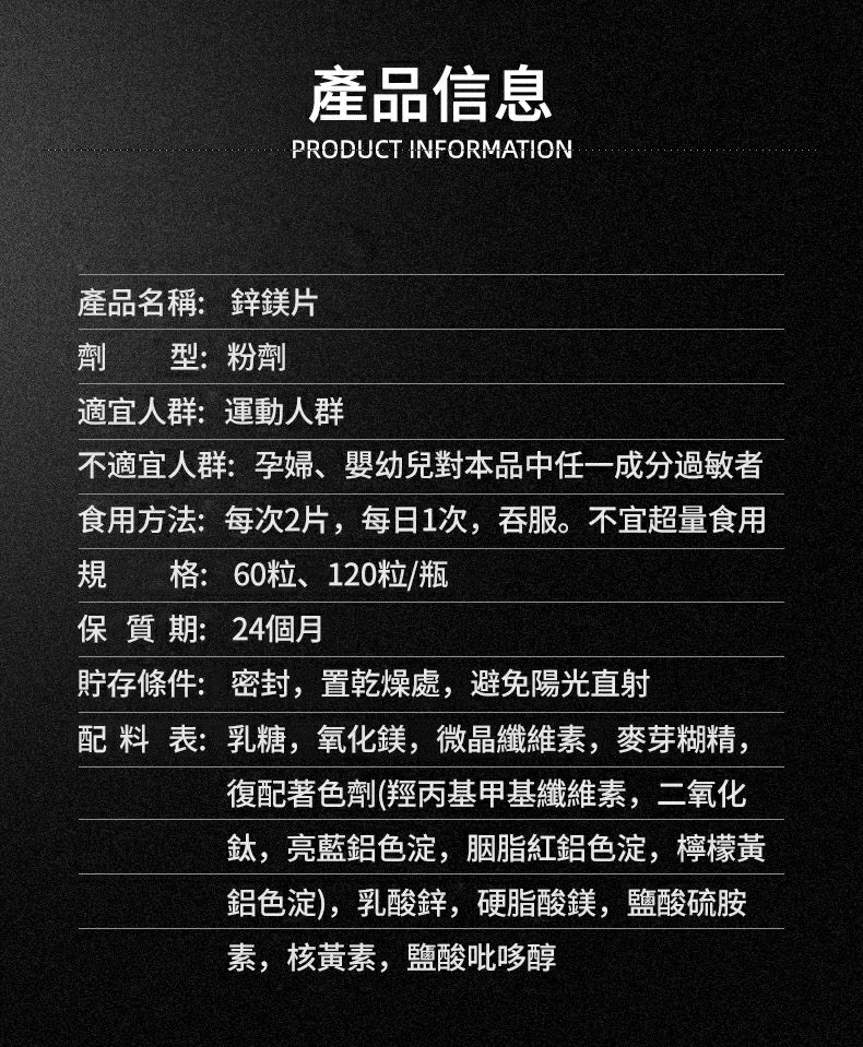 4分鐘前【品牌狂歡購】男士鋅鎂片(60粒/瓶),增肌、促睾!讓你成為硬漢男神!每日2片,餐後半小時內服用!鋅鎂是男人必備的元素,有效增肌、促睾,讓你精力充沛,讓你更強、更贏、更持久! - 【戰力十足二療程装】6瓶(360粒)=NTS1199
