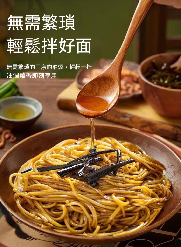 20分鐘前醇厚麵醬,完美搭配麵食,展現獨特風味 ,五分鐘就能吃上的蔥油拌面 ,無需繁瑣步驟 ,開瓶即食 油潤蔥香即刻享用 ,增鮮提香 ,秒變大廚 ,飯或者面都能一勺搞定 - 【98%客戶選擇】4入組-NT$1180