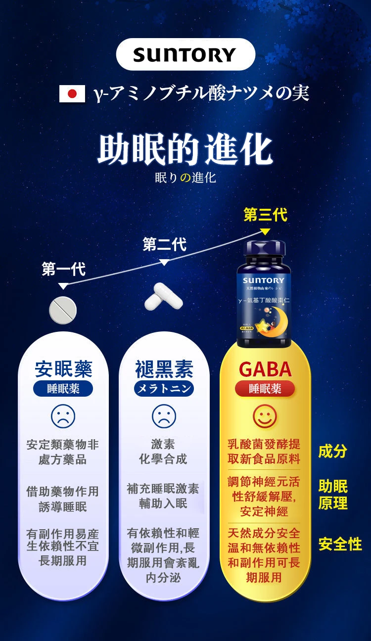 2分鐘前【三利suntory健康好眠得】日本製 天然植物エキス γ-氨基丁酸酸棗仁片 食品級原料 0蔗糖 0激素 0負擔 每天睡眠香 精神足 皮膚潤 記憶好 - 【買1送1 輕度失眠 睡眠時間加長】2入組NT$1480