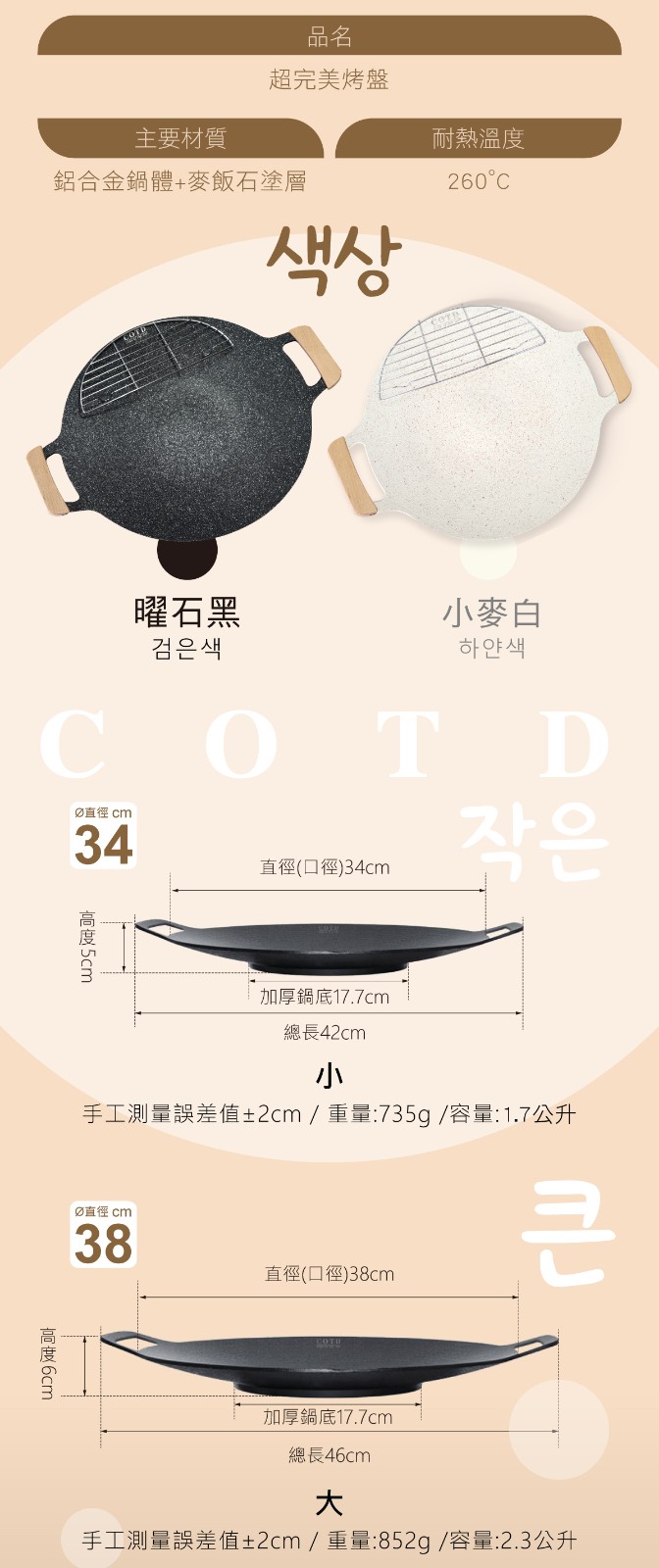 4分鐘前一鍋多用!聚餐必備好幫手! COTD超完美韓國烤盤 - COTD超完美烤盤34CM 售價NT$1180