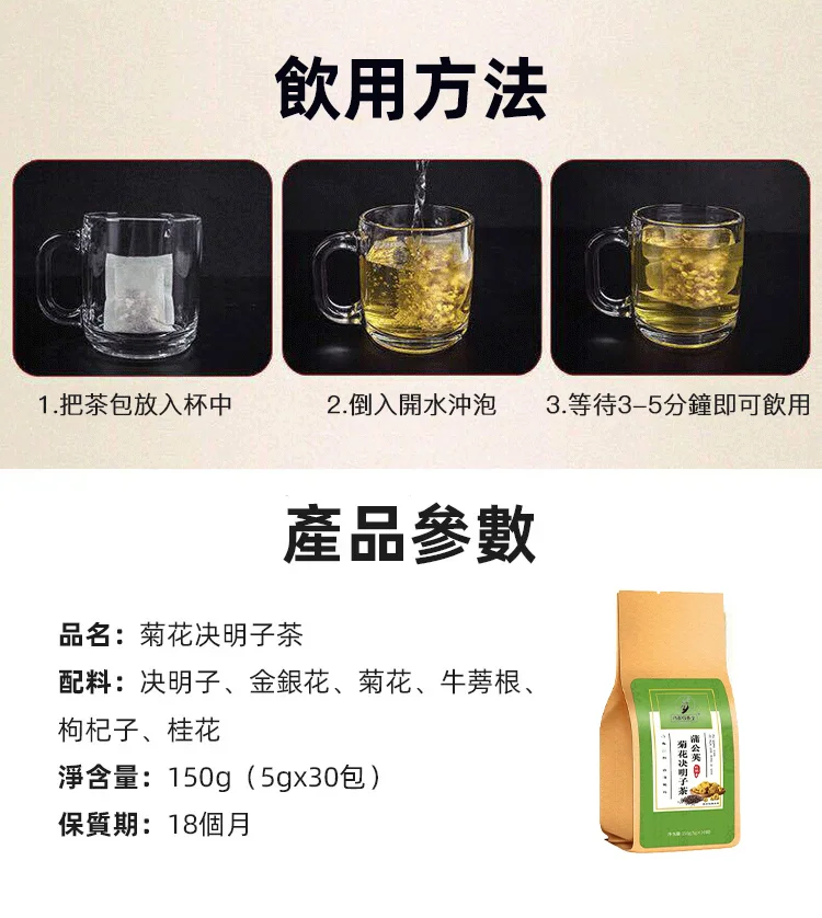 半小時前 蒲公英菊花決明子茶:養肝好茶!每天兩杯,養肝補腎,預防三高,保心護肝!【適合】熬夜加班、臉色不佳、容易長痘、口有異味、狀態不佳、掉髮、長斑、脾氣暴躁、有贅肉、降血壓! - 【體驗裝-明目降火】買一送三 4入組-NT$998