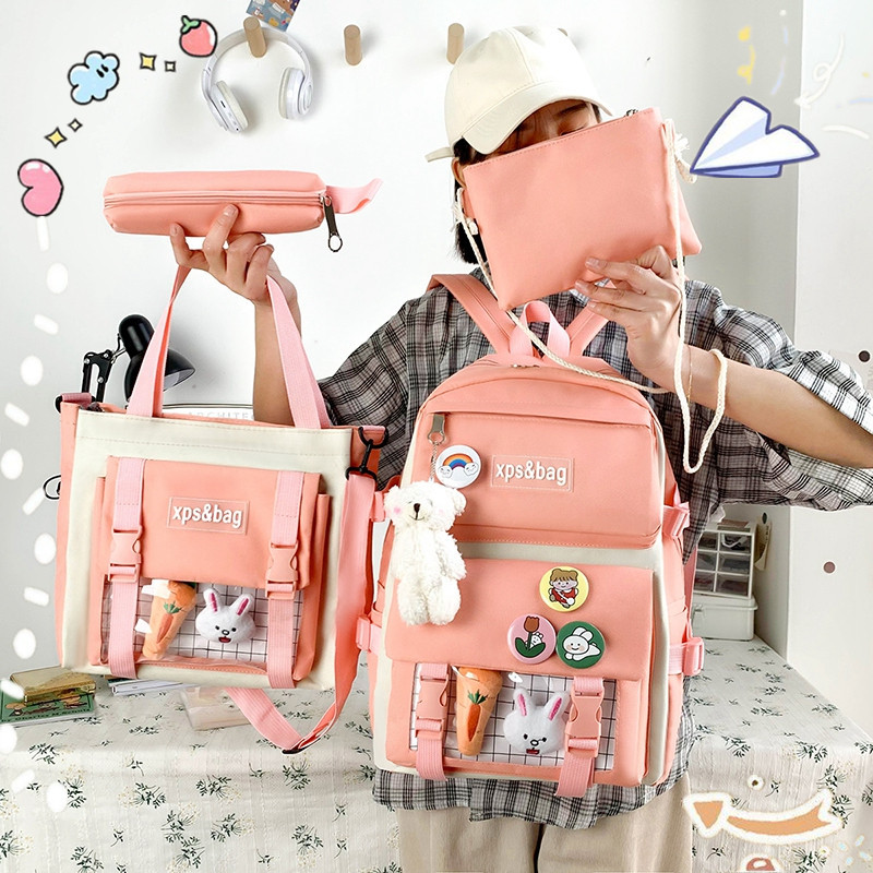 7分鐘前韩版潮流四件套學生書包_國小國中高中背包_大學生帆布撞色雙肩 - 【新品上市】1入组 -NT$1180