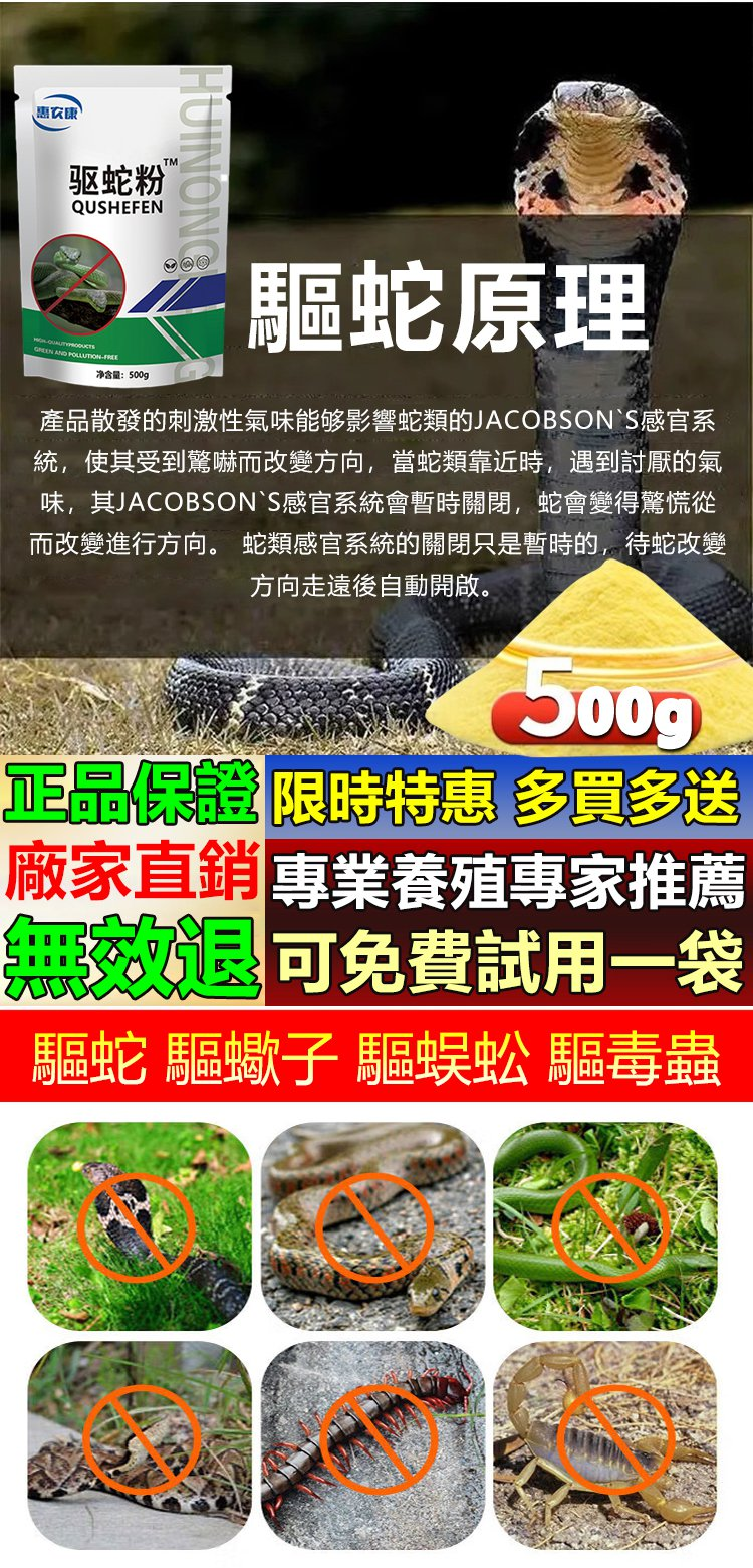 2分鐘前【强效驅蛇粉】千米内無蛇,不毒家禽, 保護家禽,驅蛇/驅蠍子/驅蜈蚣/驅毒蟲,一撒驅蛇蟲,時效可達90天,不怕雨淋 - 【破盤嗨購】買二送三 5入組 NT$-1498
