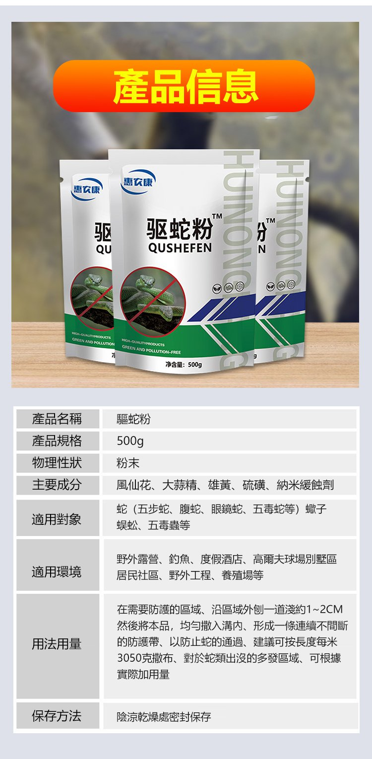 20分鐘前【强效驅蛇粉】千米内無蛇,不毒家禽, 保護家禽,驅蛇/驅蠍子/驅蜈蚣/驅毒蟲,一撒驅蛇蟲,時效可達90天,不怕雨淋 - 【破盤嗨購】買二送三 5入組 NT$-1498
