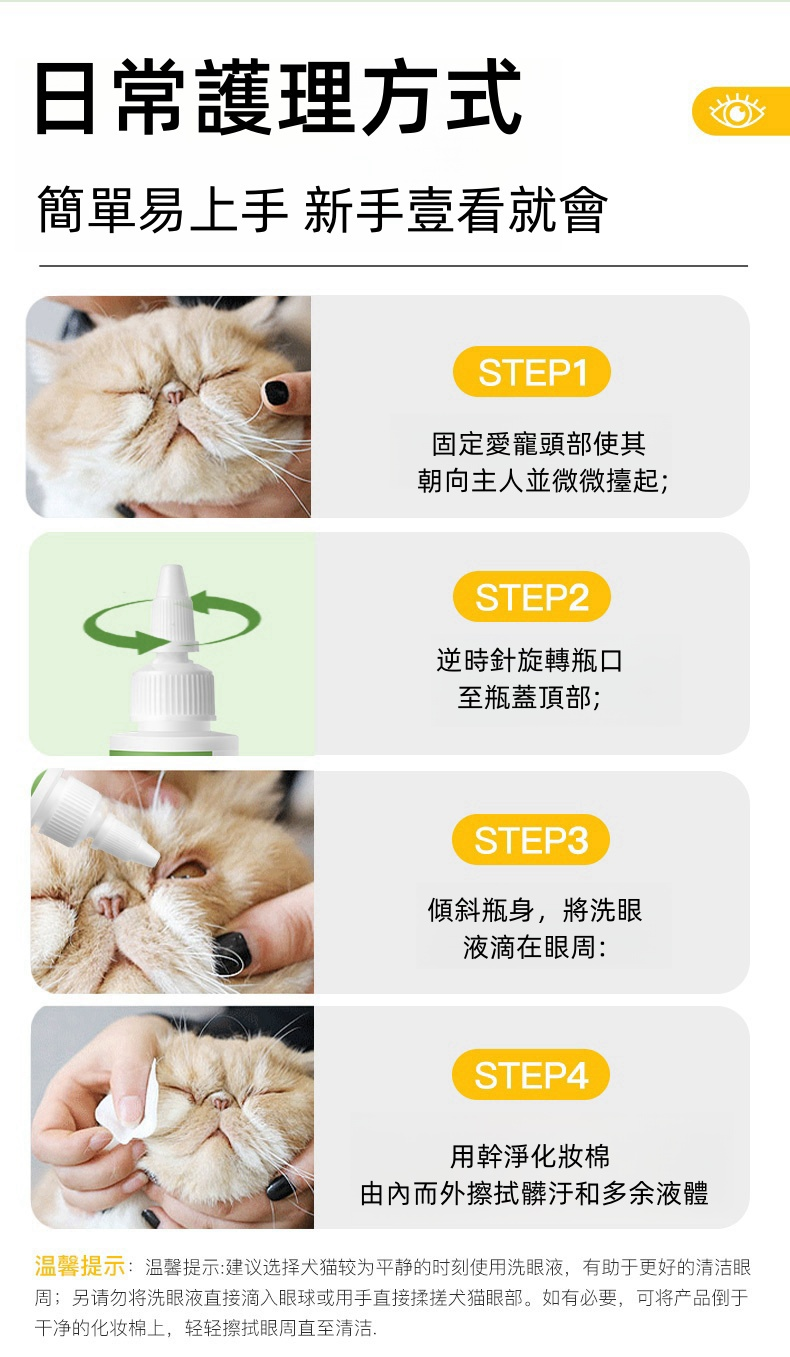 2分鐘前【寵物洗眼液】眼部清潔貓咪狗狗去淚痕消除粉神器,去眼垢去淚痕 防止眼部疾病 - 【可用三個月】3入組-NT$1190