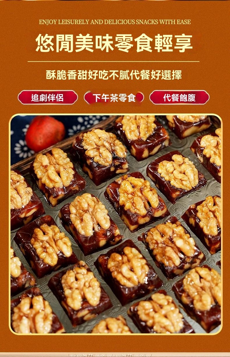 12分鐘前【爆款熱賣】山楂烤核桃糕真材實料健康營學生養代餐早餐好吃飽腹下午茶 - 【500g嘗鮮價 限時下殺】NT$998