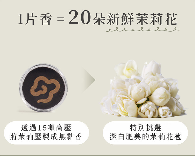 20分鐘前原木香 茉莉花無黏香 10g/ 20g 無粘香 祥雲香 食用級 無毒 花壇茉莉花 窨茶 薰香 擴香 開運 招財 濃縮10倍香氣 臥香 線香 無黏粉 獨家技術 - 茉莉花無黏香 祥雲款(10片裝)3罐
