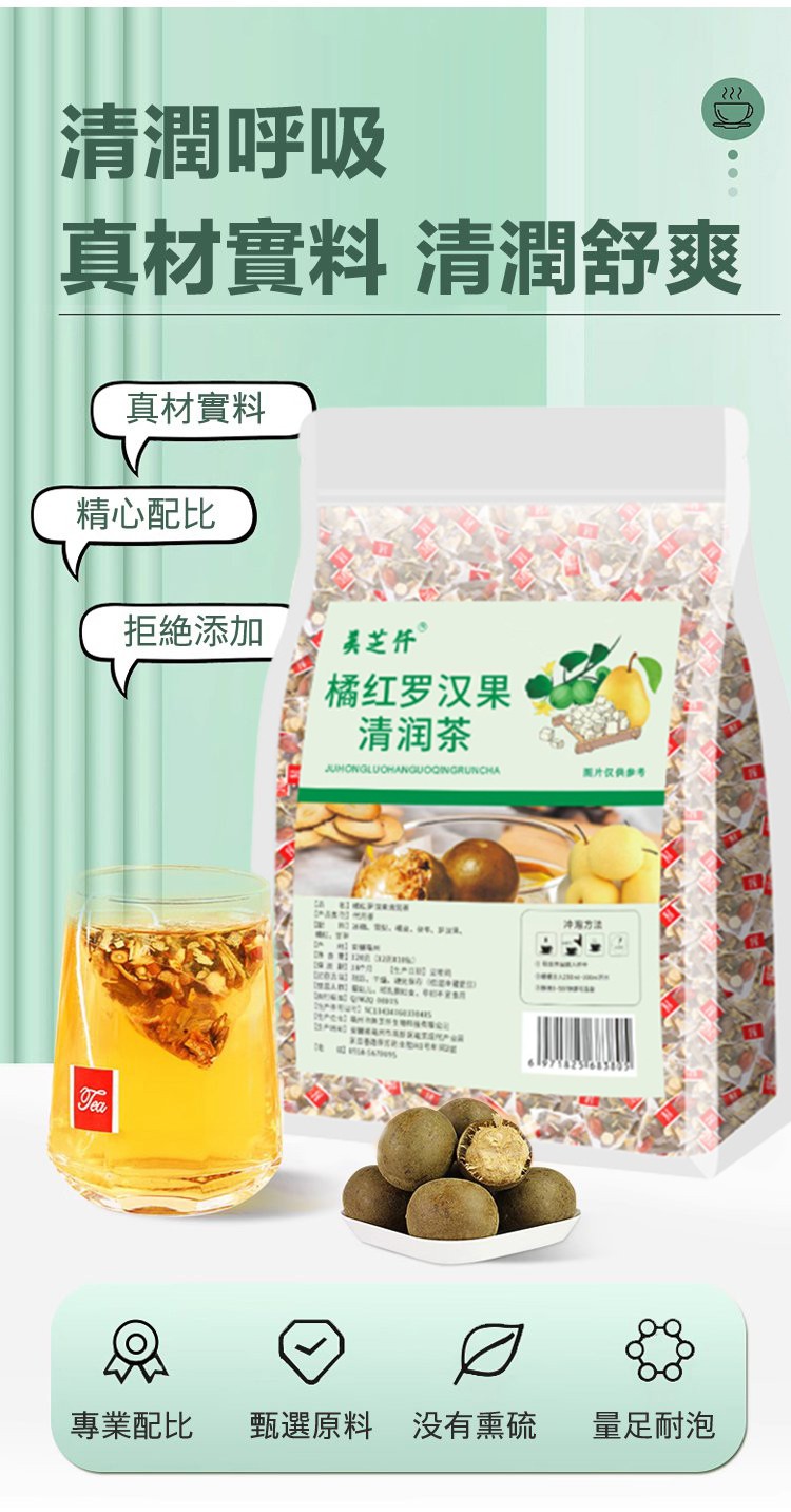 7分鐘前橘紅羅漢果清潤茶 止咳平喘 呼吸順暢 - 老闆力建【限時優惠】15入組(12克*10包)-NT$1299